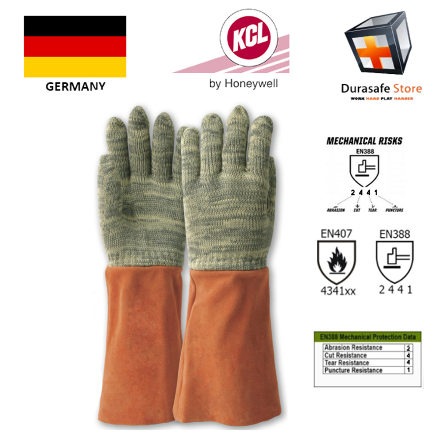 KCL GERMANY 954 KarboTECT L Heat Resistant 300ºC/572ºF Carbon/Para-Aramid Glove Yellow/Black 15″ Size 9,10