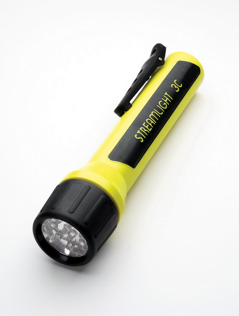 Streamlight 33204 Propolymers Yellow Flashlight Intrinsically Safe with 10 White LED 3C Batteries Streamlight LED Propolymer flashlights are the ultimate flashlights for expeditions, caving, camping, fishing, outdoor activities, and emergencies. Their non-conductive, corrosion proof polymer housings are virtually unbreakable and waterproof to 200′. Streamlight’s state-of-the-art LEDs are shock resistant, have a 100,000 hour life, and allow a battery life 20 times longer than standard flashlights. All Streamlight ProPolymer LED models are intrinsically safe and approved for Class 1 Division 1 use in hazardous atmospheres. The lens head on each model rotates to turn the light “on” and off” as well as a momentary rear tailcap switch.