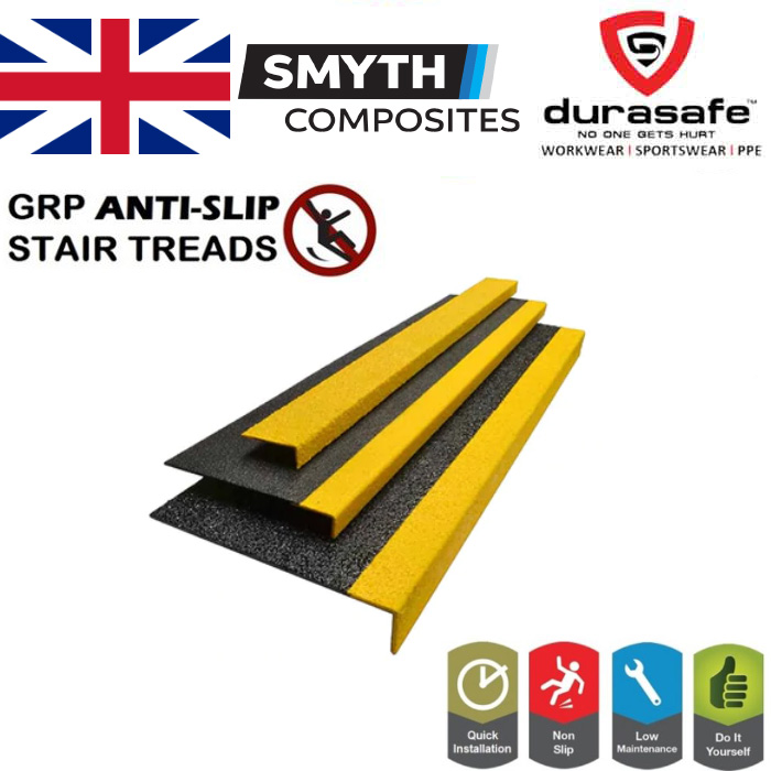 SMYTH GRP Anti-Slip Stairs Tread 100# Nosing Angle Yellow Grit Top Size 460 x 75 x 40