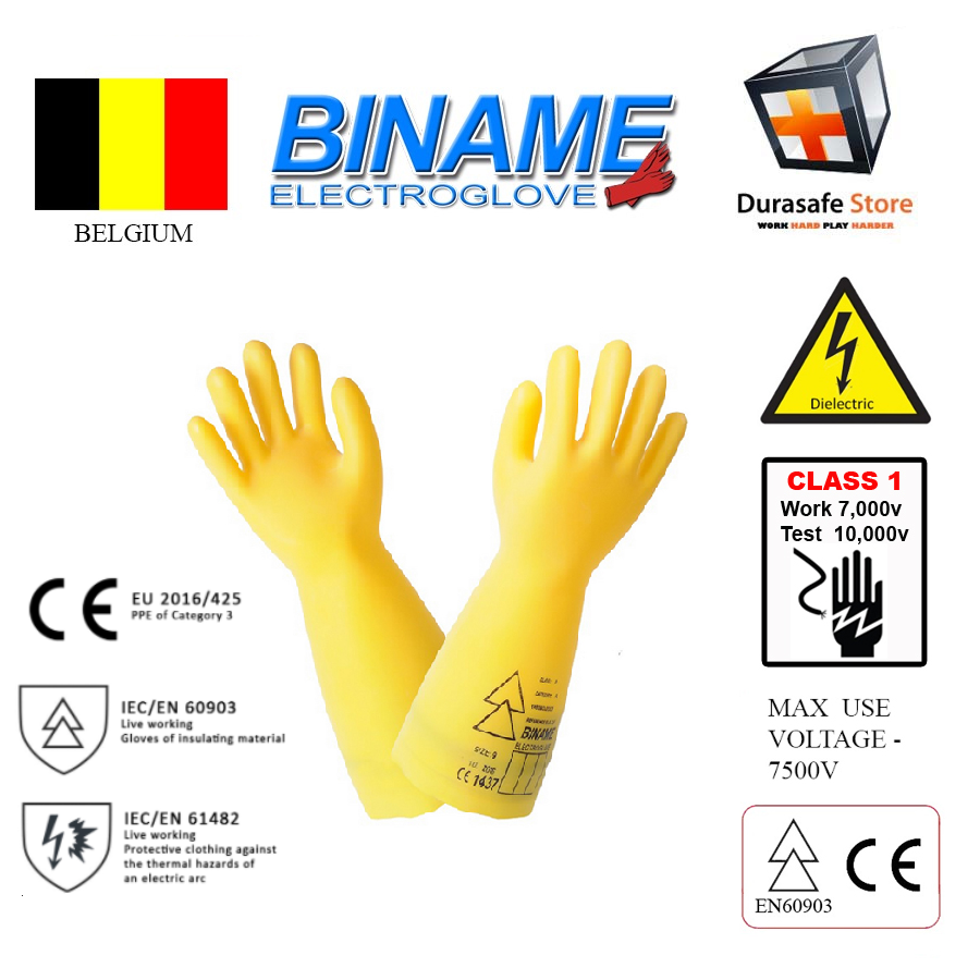 They are rated as a “Class 00” 2,500 Volts and “Class 0” 5,000 Volts glove with a maximum actual use voltage of 500 Volts and 1,000 Volts in accordance with EN 60903.