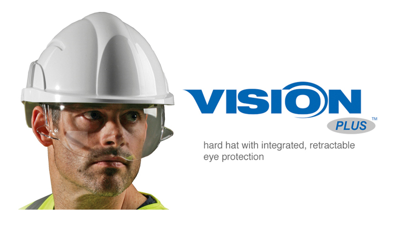 VISION and VISION PLUS hard hats represent a revolutionary design in safety. Integrated, retractable visors offer full side shielding that won’t interfere with eyeglasses. With optional Ear Defenders, workers are always comfortable and protected. With VISION and VISION PLUS, you’ll never have to worry about losing your eye protection again.