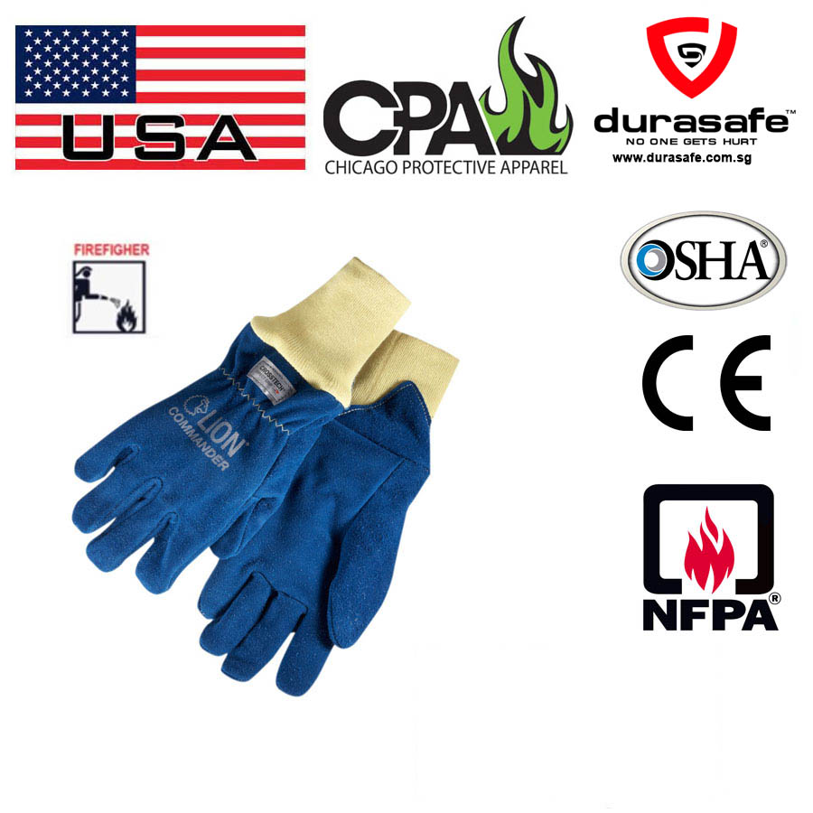 The FireGuard® Commander meets the glove requirements of NFPA 1971 standard on protective ensemble for structural fire fighting current edition and/or Federal OSHA 29 CFR 1910.156 (e)(4) effective 7-1-85 & California