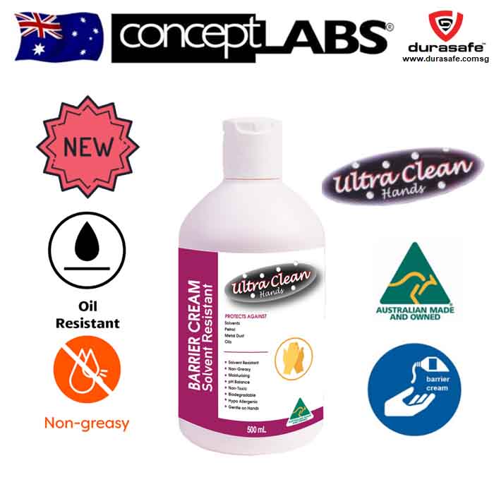 Ultra Clean Hands Solvent Resistant Barrier Cream forms a protective barrier against solvents, oils and other irritants like chemicals, petrol and metal dust. Use as a protective layer alone or under gloves to insulate your hands from anything your day throws at you. Ultra Clean Hands Solvent Resistant Barrier Cream is pH balanced and contains protective moisturisers which can assist in the prevention of industrial dermatitis.