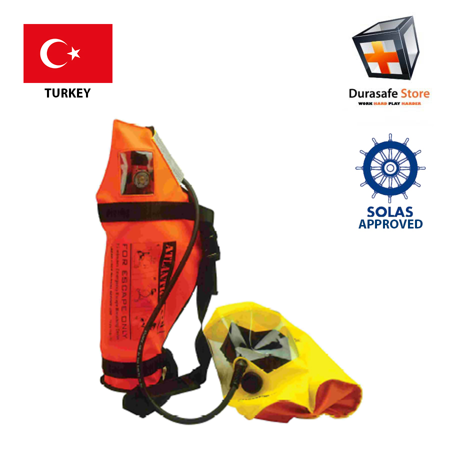 ATLANTIC AIR is a self-contained open-circuit Emergency Escape Breathing Device consisting of Air Reducer Valve, Hood, High Pressure Aluminium Cylinder and Carrying Bag. It is a compact and lightweight device. It allows the user to escape from hazardous areas in which fire, smoke, toxic gases, or oxygen deficiency may occur on board.