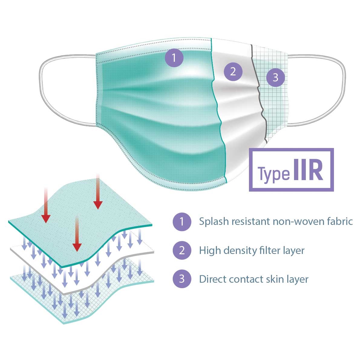 Bacterial Filtration Efficiency (BFE): above 98% (highest on the market in Type II R)