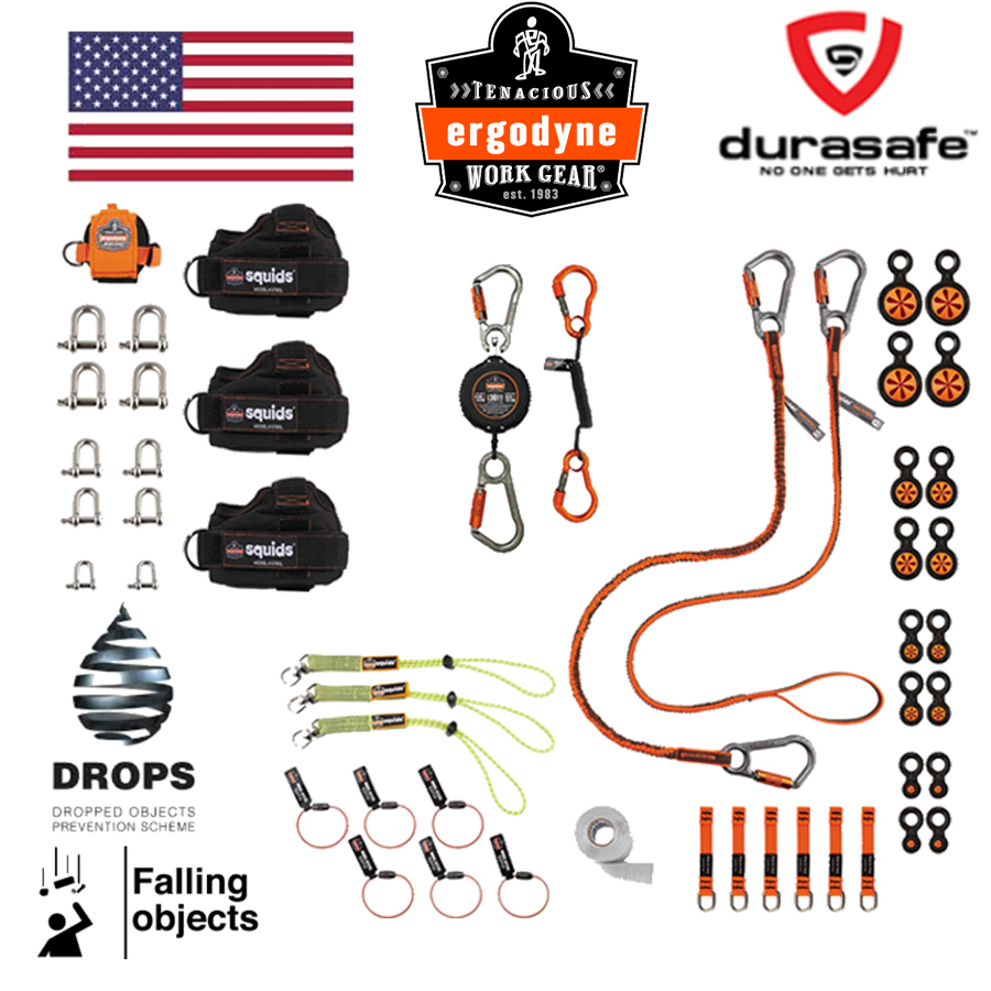 The Squids 3170 Tower Climber Tool Tethering Kit contains tool attachment and tool lanyard solutions specific for tools commonly used by tower climbers in the telecom industry, as well as linemen and antenna workers.