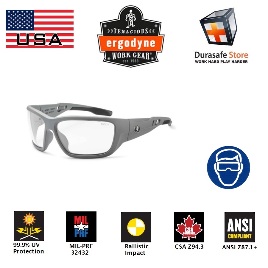 Baldr Safety Glasses: Large full frame safety glasses with coinjection rubber temples.