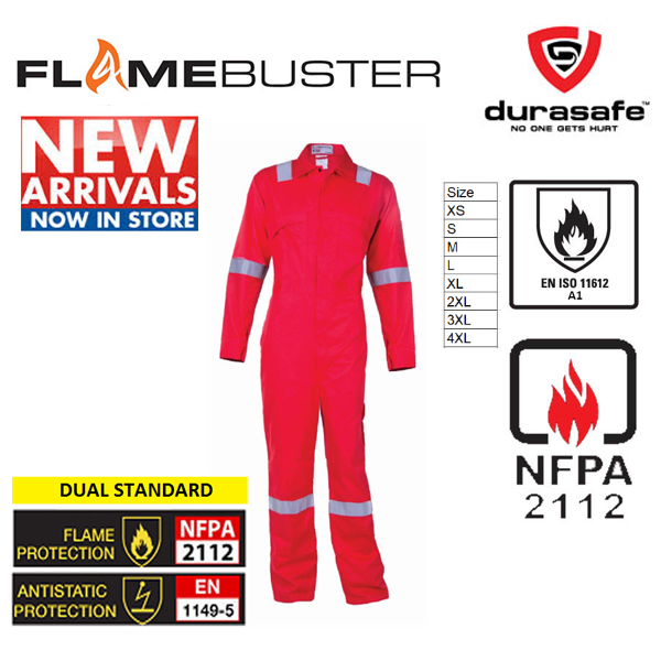 FLAMEBUSTER FR 100% Coverall Cotton Zip Red, Size S – 4XL
