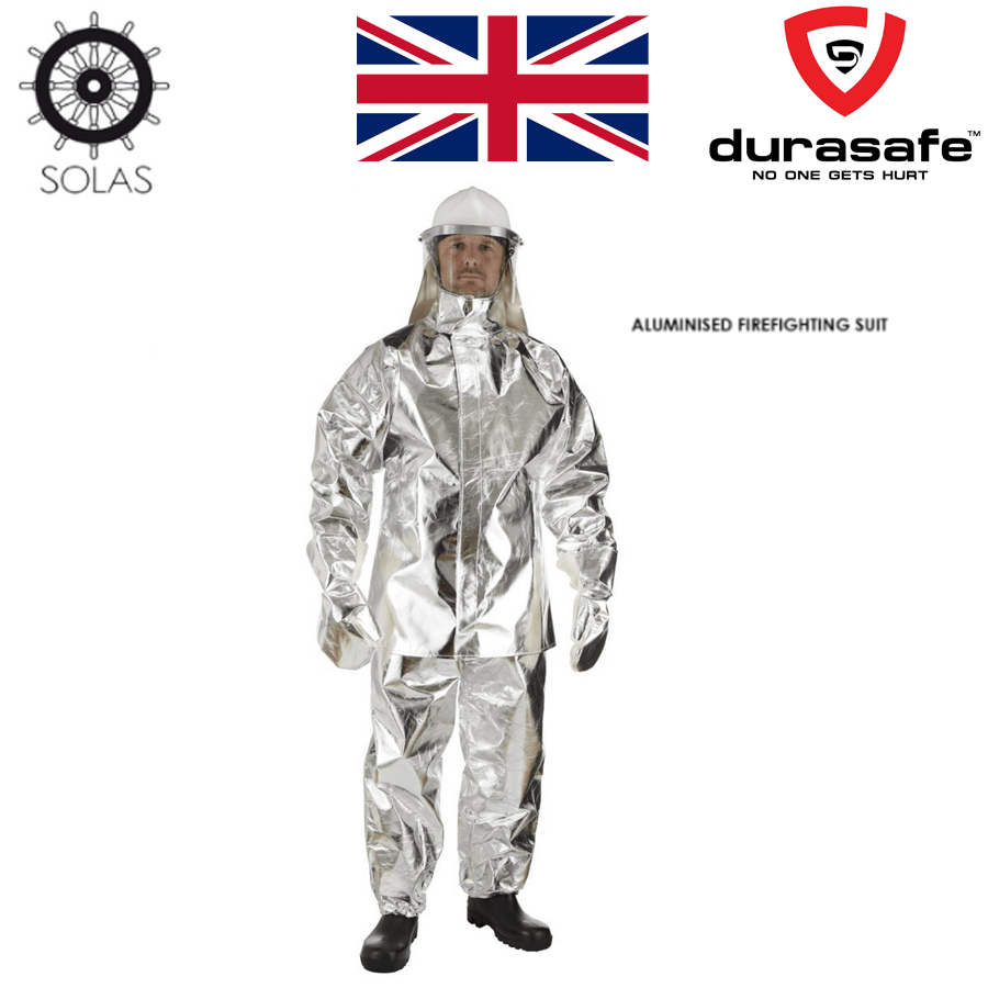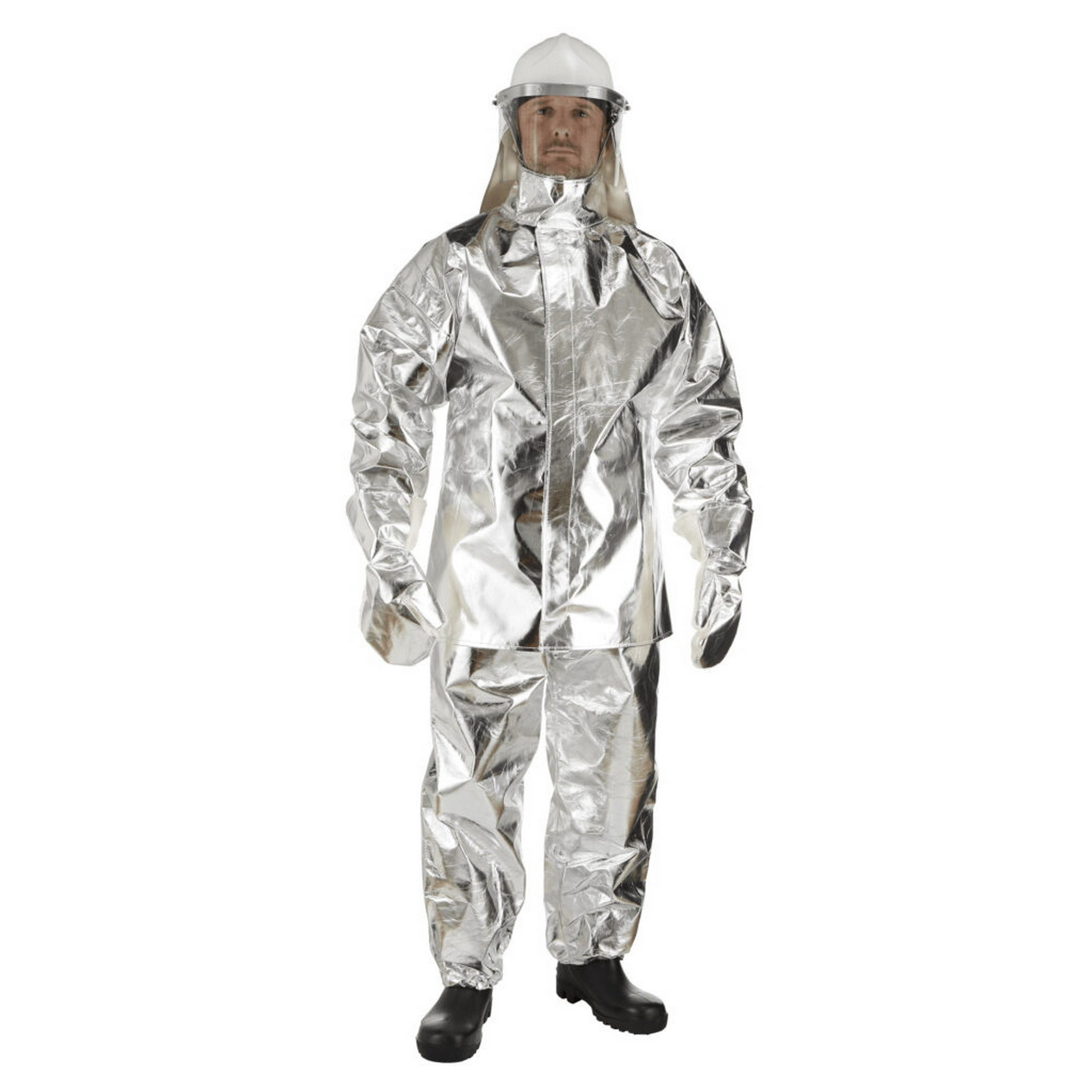 • Two piece suit fabricated in aluminised fire resistant natural cotton