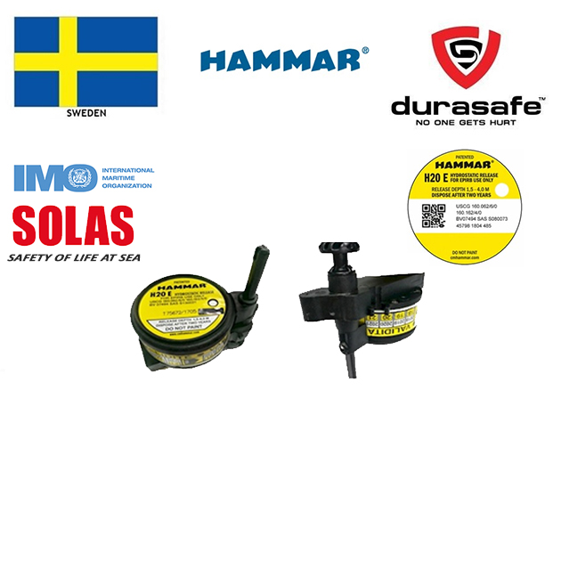 The Hammar H20E is activated by water pressure which will automatically release the Emergency Position Indicating Radio Beacons (EPIRB)