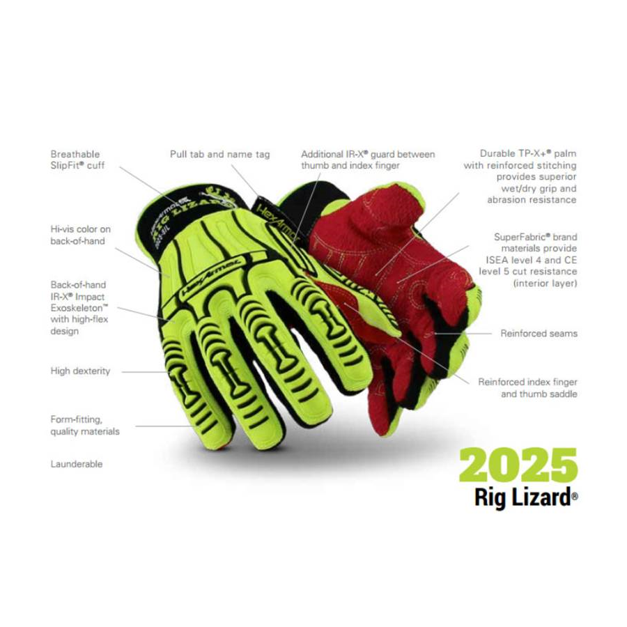 Introducing Hexarmor 2021 Rig Lizard Oil & Gas Industry Impact, Cut & Puncture Resistant Glove Yellow, the latest advanced technology glove from HexArmor. The Rig Lizard™ features a TP-X™ reinforced palm with ASTM Level 3 cut and puncture-resistance as well as incredible grip for oily situations. Full back of hand and finger impact protection with IR-X™ smash guard technology protect your hands from smashes and contusions.