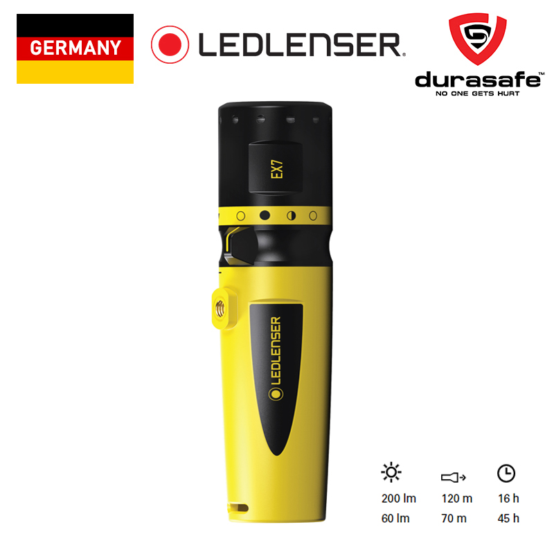 Ledlenser EX series lights meet these standards in every aspect. Designed specifically for contact with explosive gases, vapors and dust in the best possible groups IIC and IIIC.