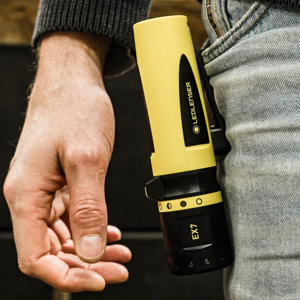 The extra large Magnetic Switch on the EX7 is easy to operate even with the clunkiest protective equipment, yet the flashlight is safe for use in Ex-Zone 0/20 and features a patented Advanced Focus System, meaning you’re safe in virtually any environment from tank to grain elevator with explosive gases or dusts. All this with a battery life of up to 45 hours.
