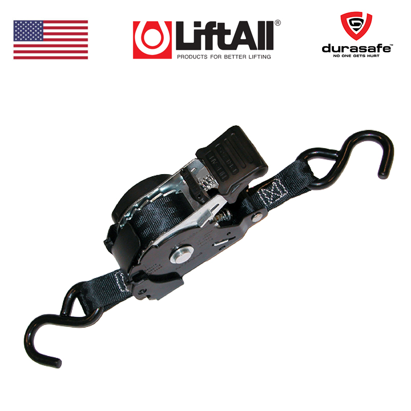 Designed for ease of use, this 1 inch x 12 foot retractable ratchet tie down assembly can hold a variety of items securely. It is convenient to use and can be installed and removed quickly. The vinyl coated S-Hooks protect your load from marring and provides long-term corrosion resistance. To install, simply pull out strap and wrap over load and ratchet until tight. To remove, release the strap from the load and the webbing will Retract back into the ratchet housing. Uses include cargo control, towing and trucking industries and recreational. Not to be used for overhead lifting.