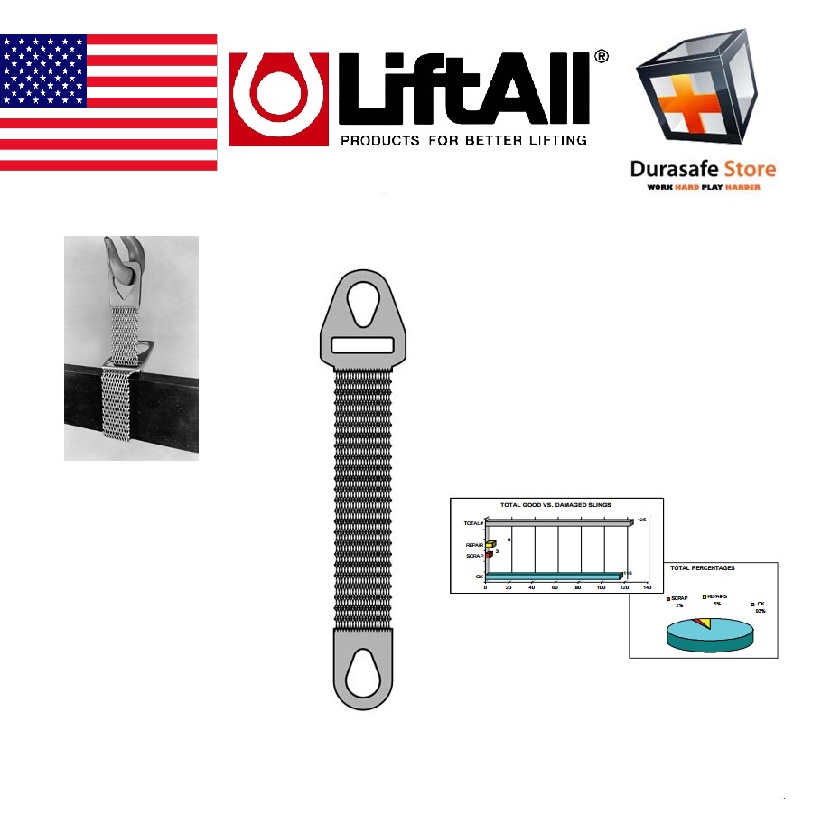 LIFTALL – USA 4100-0040 Roughneck Heavy Duty Wire Mesh Sling 6″ x 6′ Mesh Gage 10 Sling Type 1 widely used in metalworking shops and steel warehouses where loads are abrasive, hot or tend to cut web.