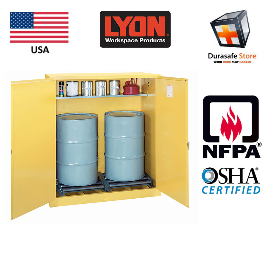 Vertical safety drum storage cabinets can house either one or two drums and feature a convenient half- shelf for additional storage space. These drum storage cabinets allow you to keep drums close to your work area without jeopardizing safety.