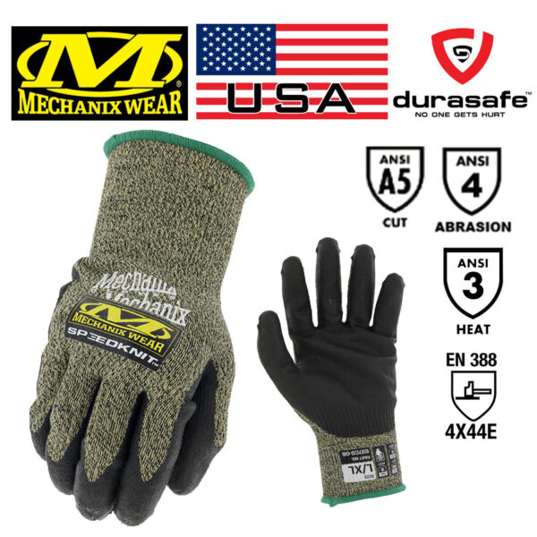 • CERTIFICATIONS – EN 388 4X44E, ANSI A5 CUT ANSI 3 HEAT