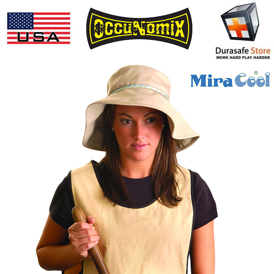 The MiraCool® Garden Hat comes with a removable cooling pad filled with MiraCool® cooling crystals for top of hat. Simply soak the pad in cold water to hydrate, insert into hat and you’ll stay cool all day.