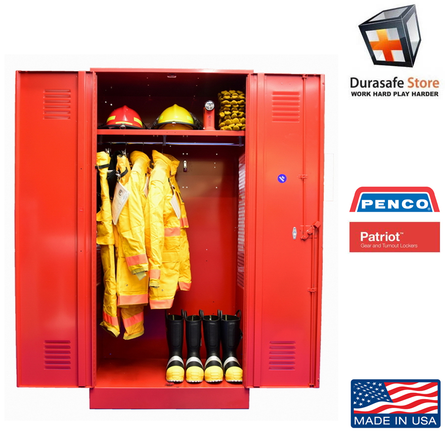 Patriot Turnout offers optimum ventilation for uniforms and outerwear with a minimum of lockable personal storage. All models are equipped with a sturdy full width shelf located 12” below the top to provide ample storage for protective head gear. A chrome plated 1 inch dia. coat rod and heavy-duty coat hooks ensure exceptional hanging capacity below.
