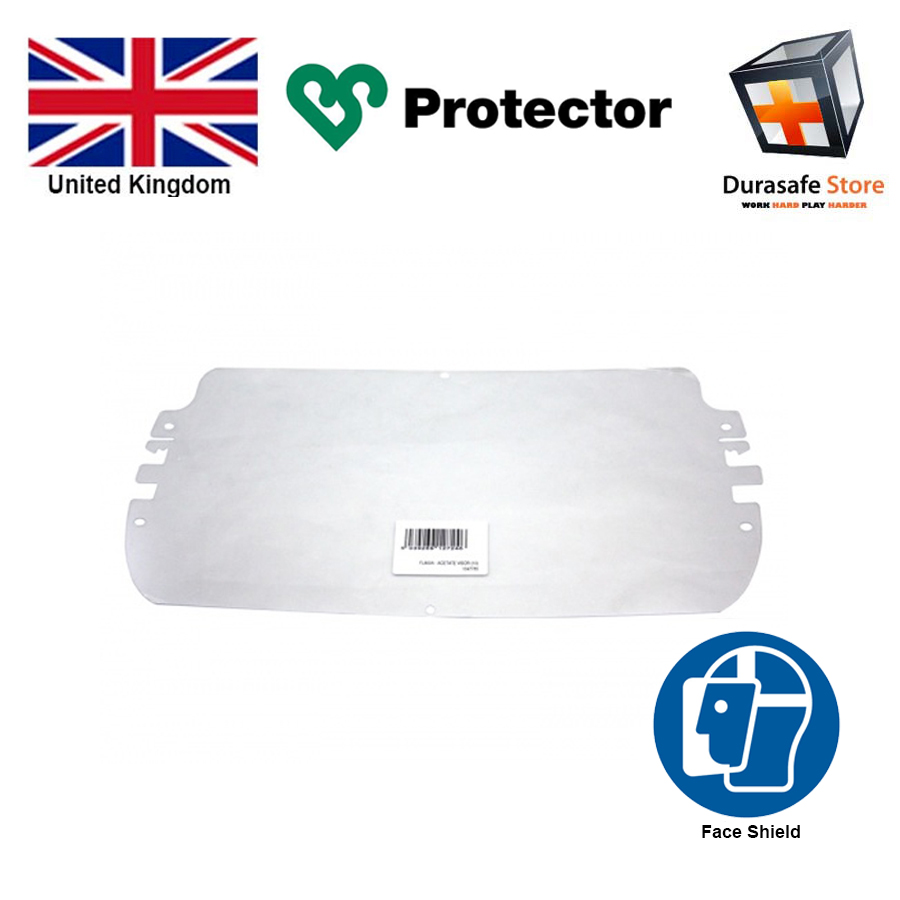 This one size FL800A clear acetate visor from Protector works as a replacement visor for other Protector face guard products.