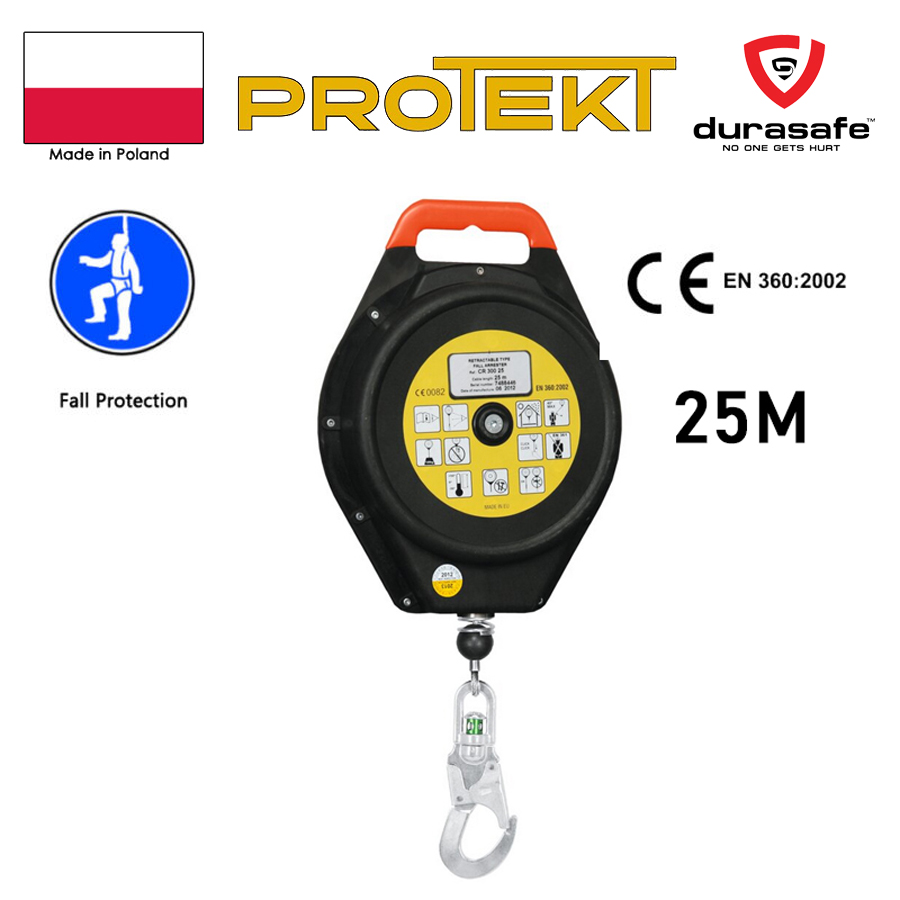 Retractable type fall arrester CR 300 length 25 m with carabiners AZ 002ASI.
