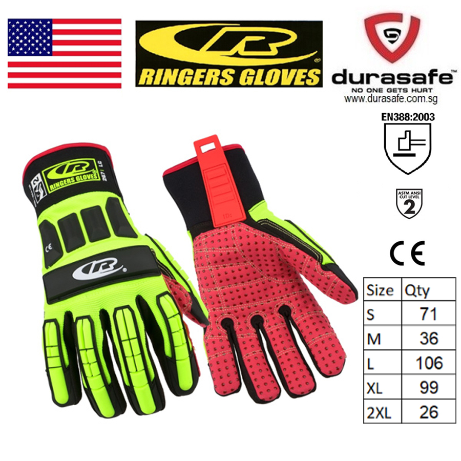 RINGERS 267 Roughneck Impact & Cut Resistant Oil & Gas Rigger Glove Hi-Viz Yellow, USA, Size S – 2XL Designed to protect the Oil & Gas Industry’s most valuable hands.