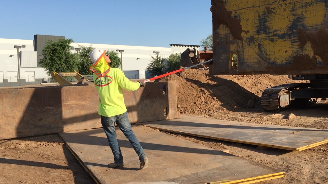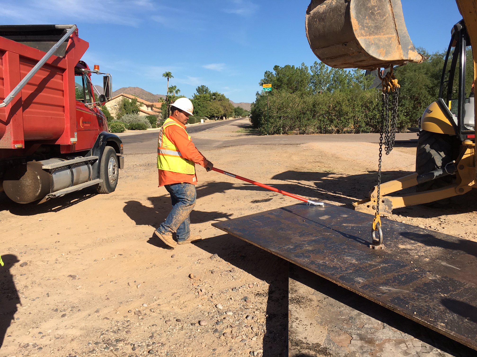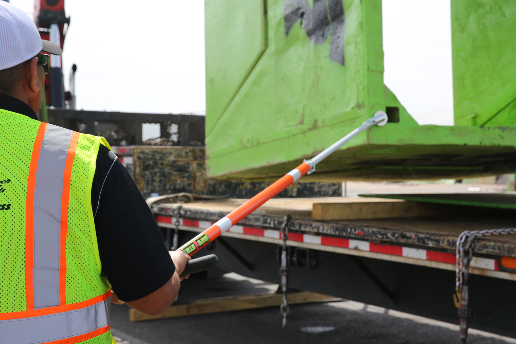 Safe-T-Stik is the ultimate hands free, no-touch magnetic safety tool for moving road plate, trench plate, poles, pipe,