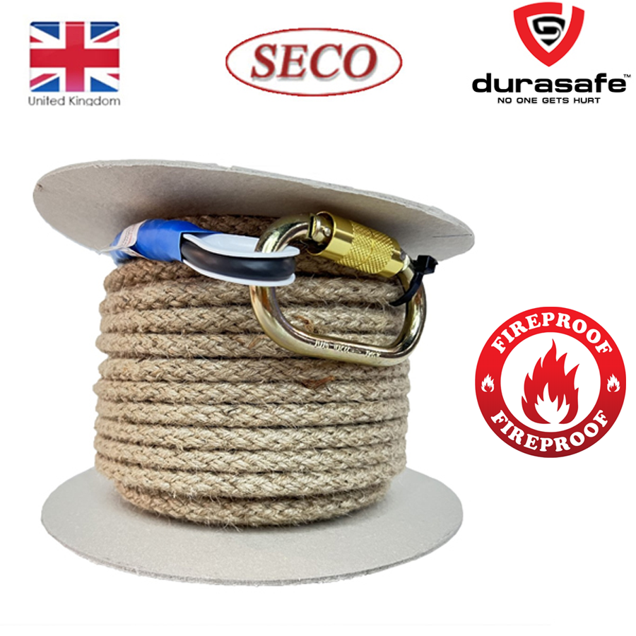 Inner core made from 72 strands of flexible galvanised steel wire with an outer covering of plaited jute, giving an overhaul diameter of approximately 10-12mm. Breaking strain of not less than 1 ton (1016 kg). A large double lock safety hook for ease off attachment to a safety harness or belt is fitted to one end of the lifeline. The lifelines are available in varying lengths from 15 metres to 61 metres as standard.