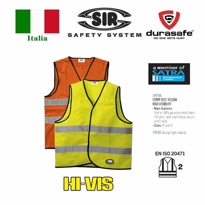 Manufactured in a washable flourescent orange/yellow polyester they incorporate two 50mm highly reflective retro reflective silver bands around the torso. Velcro fastening closures.