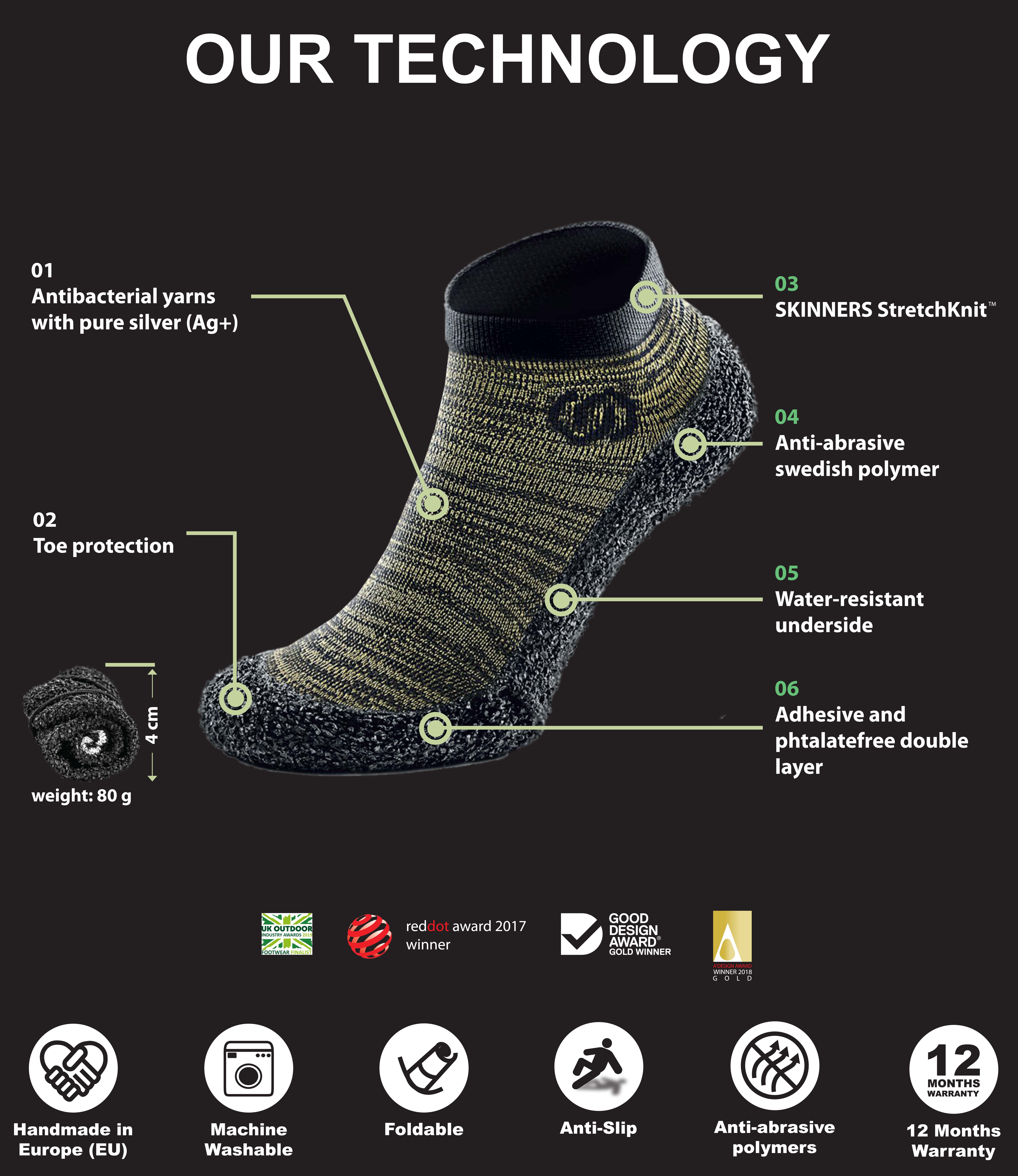 Team behind Skinners developed and patented the fusion technology that merges the best features of shoes and socks into one compact product.