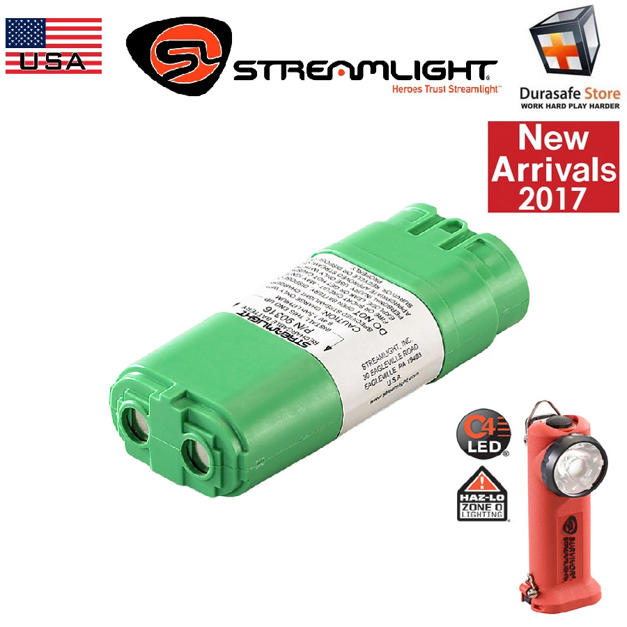 Replacement Lithium Ion Battery Pack Assembly for the low profile Streamlight Survivor ATEX flashlight. This battery comes in a green sleeve.