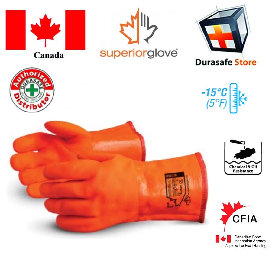 The high grade, low temperature PVC formulation insures flexibility and crack resistance in cold temperatures. Warm triple layer, foam laminated insulation. Good chemical and oil resistance. Roughened finish on palm for better grip.