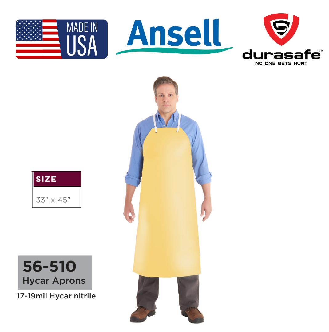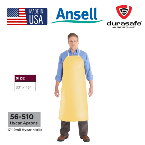 Cold-resistant heavy-duty Hycar nitrile apron, for chemical splash protection