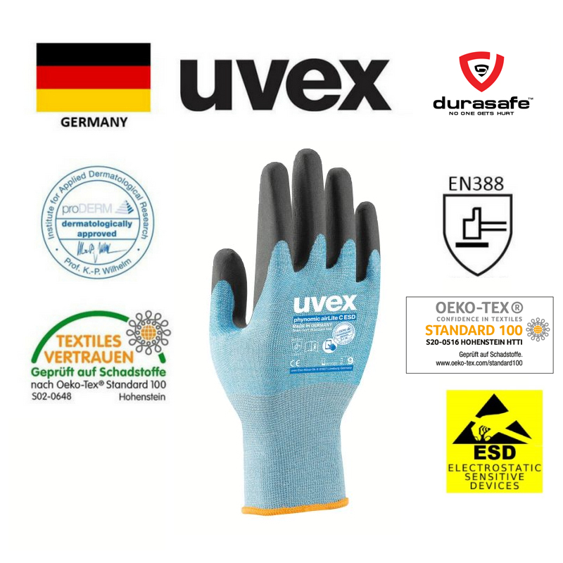 The uvex phynomic airLite C ESD is the lightest safety glove in its