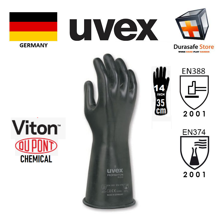 This safety glove consists of a butyl rubber base layer and a Viton® outer layer measuring 0.2 mm in thickness. In total, the glove is 0.6 mm thick. It also provides excellent mechanical properties.