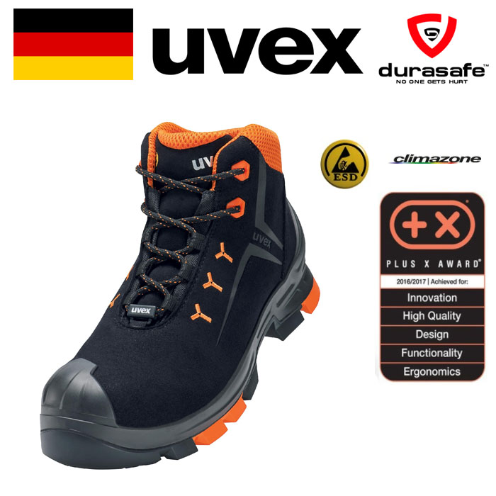 The latest generation of 100% metal-free uvex xenova® toe cap. Compact design, anatomical shape, good side and ankle twist stability, no thermal conductivity and antimagnetic properties