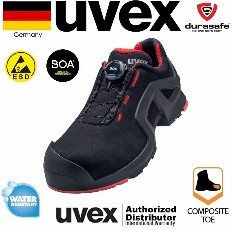 uvex 1 safety shoes in protection classes S1 P and S3 protect and support the natural movement of the whole body. Using the latest physiological research and innovative technologies, strain experienced by the body during the working day is reduced and wearer comfort is optimised. The ergonomic design of the uvex 1 safety shoe strikes the perfect balance between protection and comfort. The shoe boasts a streamlined and minimalist design.