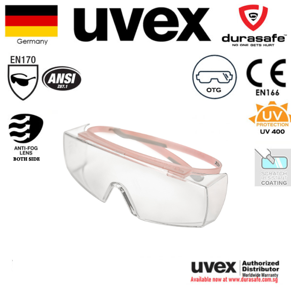 The Uvex super OTG is a very comfortable safety eyewear with excellent coverage of the eyes. The uvex super OTG also fits easily over prescription spectacles and is therefore ideal for visitors, for example.