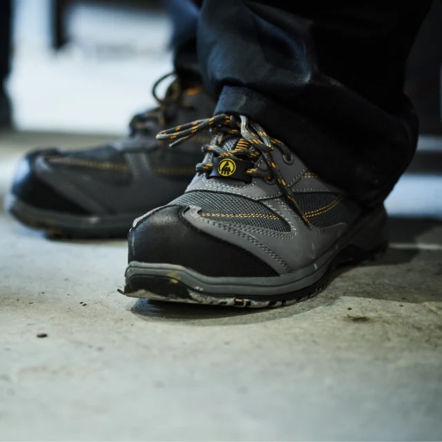 The grey breathable upper is stylish and allows the wearers feet to breathe enhancing comfort and delivering all day wear ability. Being metal free makes this design ideal for a wide variety of working environments including airports and high security areas because the Non Metallic construction of this style will set of metal detecting security equipment. Leather free and Vegan friendly these ESD safety trainers are packed with safety and comfort features.