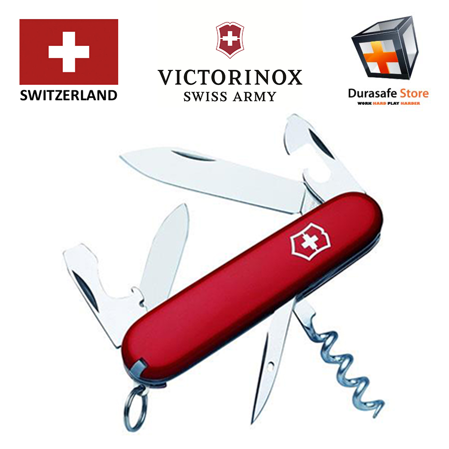 The Victorinox 53131 Tourist Knife (Red) features a large blade, small blade, corkscrew, can opener with small screwdriver (also for Phillips screws), bottler opener with large screwdriver and wire stripper and reamer with sewing eye. The red handle, 3.25″ closed, has a toothpick, tweezers and key ring. The Swiss Army knife carries Victorinox famous lifetime warranty against any defects in material and workmanship.