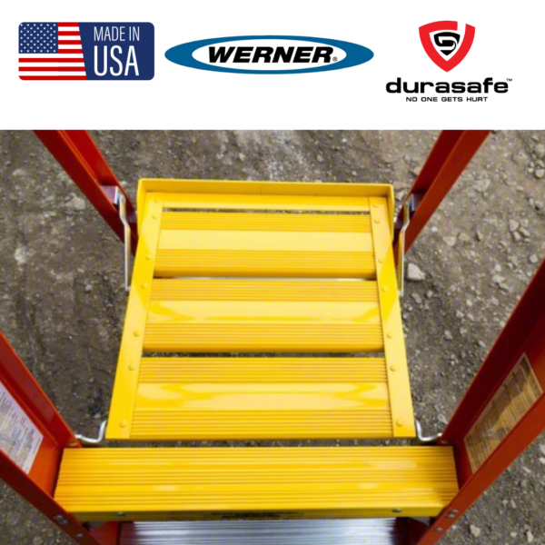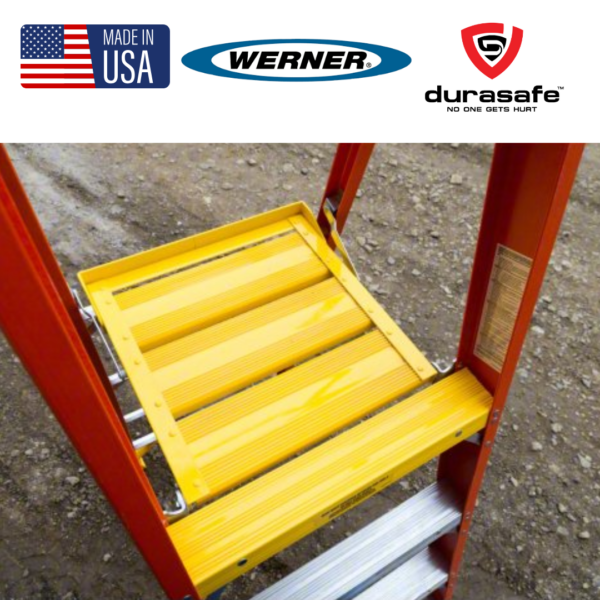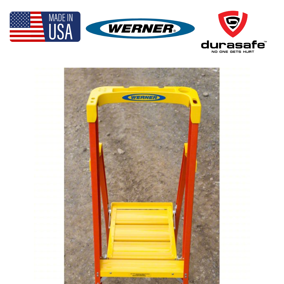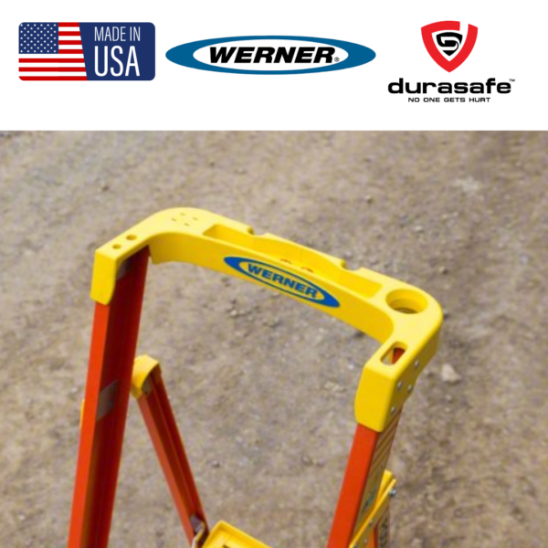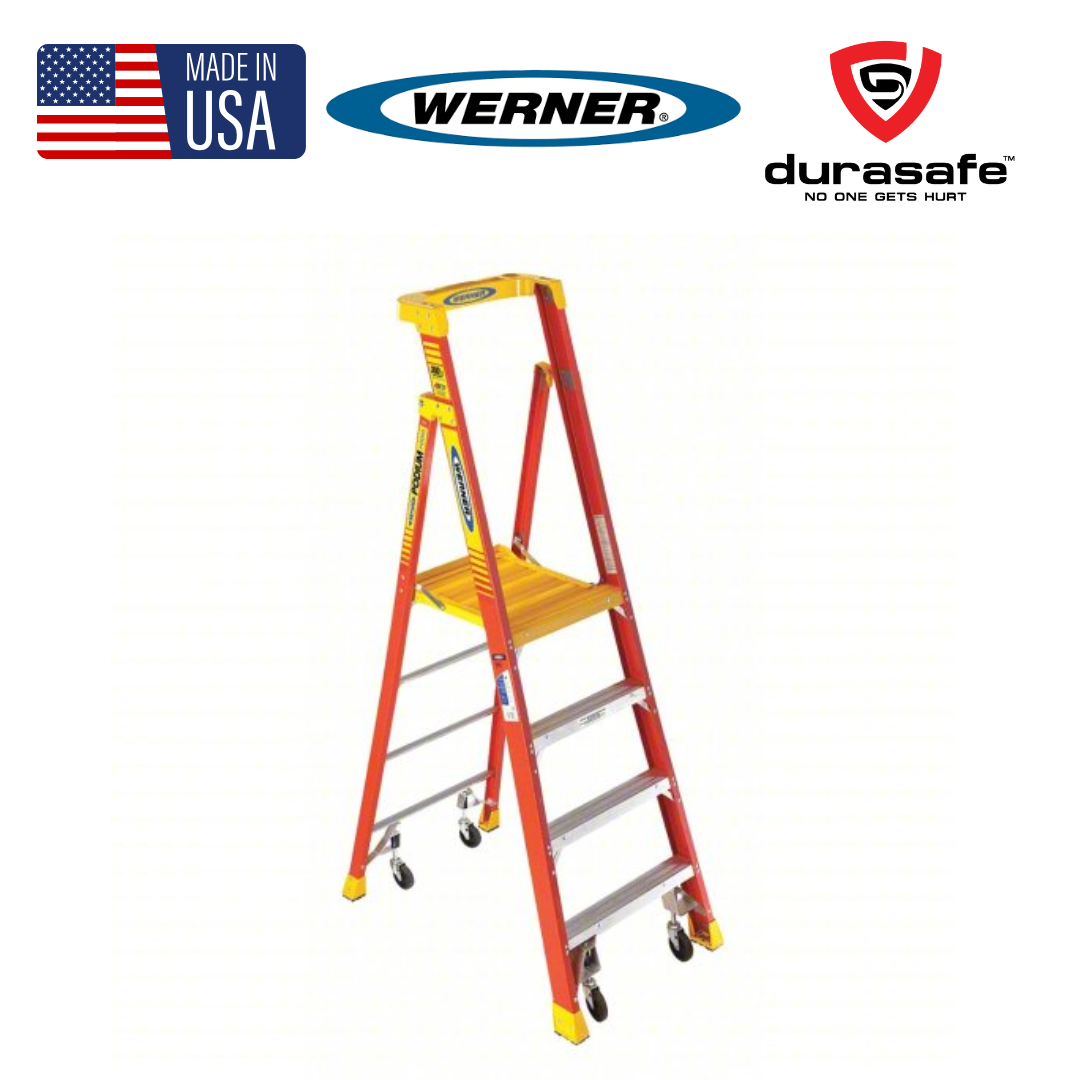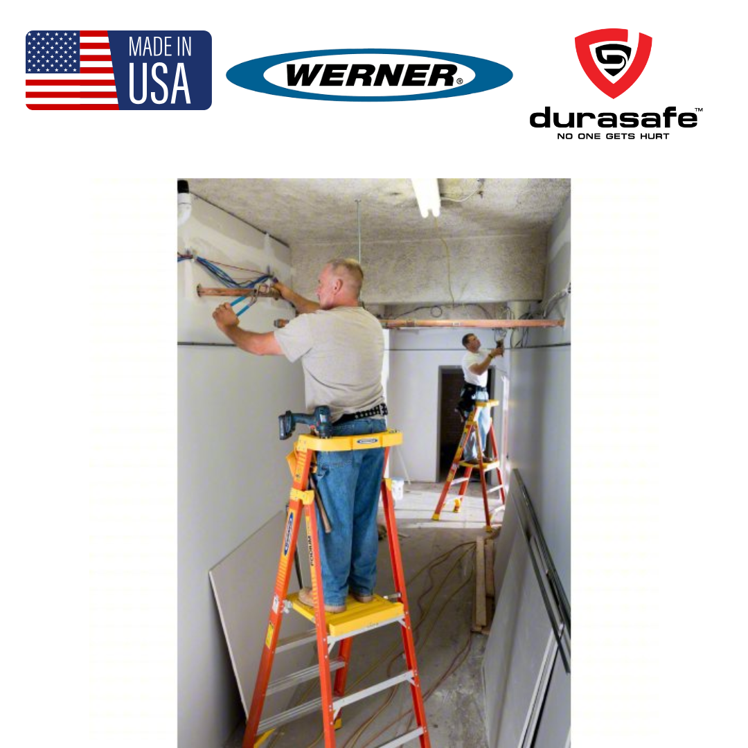 The PD6204-4C Podium Ladder offers the same reach height as a 7-foot step ladder and is ideal for working at fixed heights, and is easier to manoeuvre than scaffolds or lifts. The extra-large platform with toe guard feels like you are standing on the ground, and the 4X Work Zone allows you to work facing any direction. This ladder features full aluminium bracing and a full set of rear horizontals. The LOCKTOP™ extended guardrail provides an extra point of contact and conveniently organises tools and accessories. The newly designed EDGE360® gives the bottom of the ladder protection from every angle with integrated rail shield, EDGE bracing and oversized foot pads.