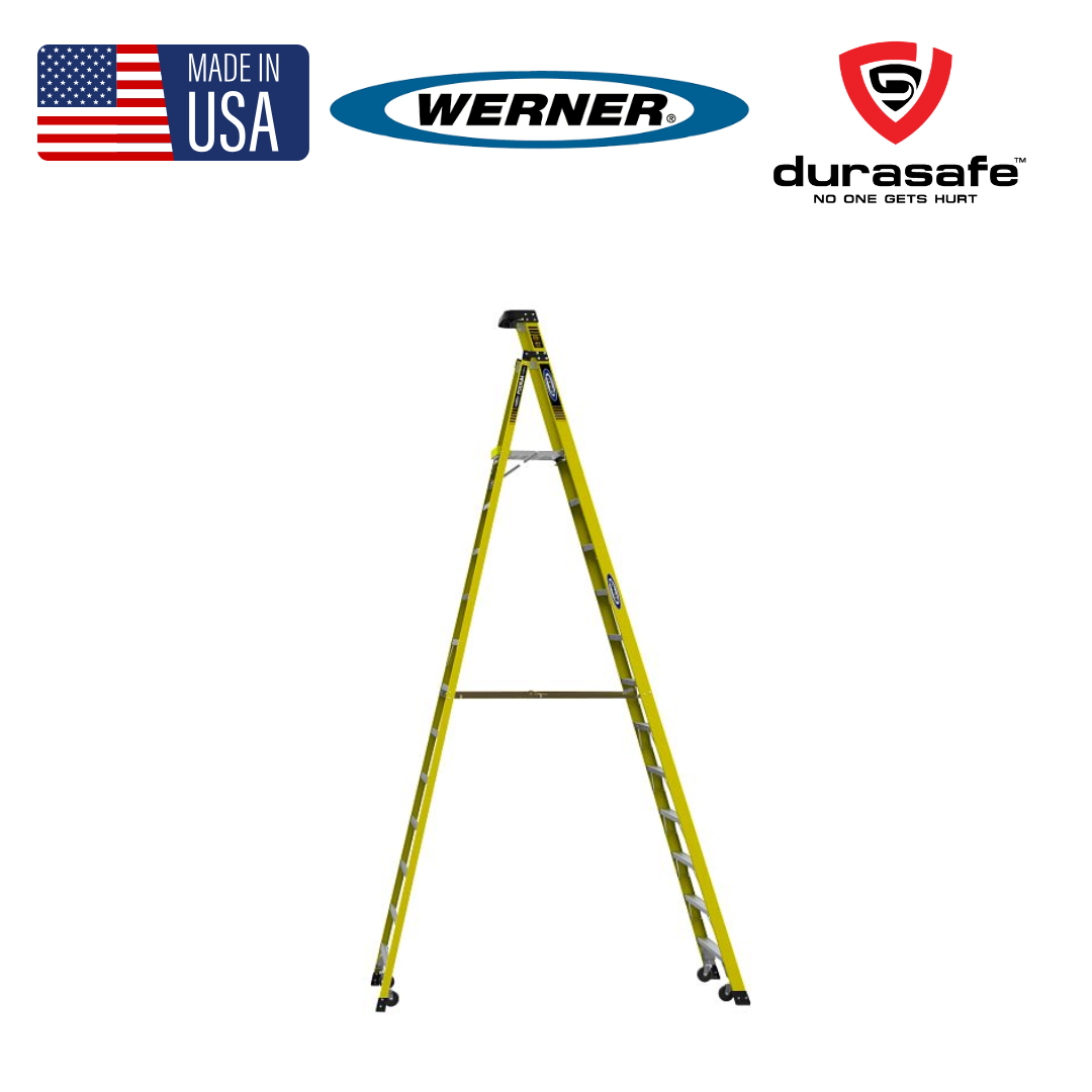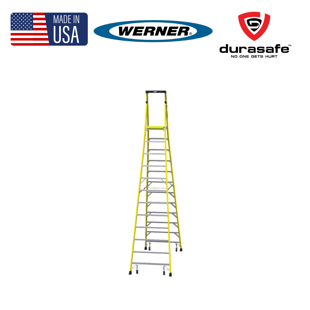 The PD7312-4C Podium Ladder offers the same reach height as a 14-foot step ladder and is ideal for working at fixed heights, and is easier to manoeuvre than scaffolds or lifts. The extra-large platform with toe guard feels like you are standing on the ground, and the 4X Work Zone allows you to work facing any direction. This ladder features full aluminium bracing and a full set of rear horizontals. The LOCKTOP™ extended guardrail provides an extra point of contact and conveniently organises tools and accessories. The newly designed EDGE360® gives the bottom of the ladder protection from every angle with integrated rail shield, EDGE bracing and oversized foot pads.